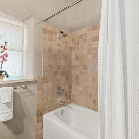 Los cuartos de baño de la Villa Adobe Sol In Santa Fe Nm también incluyen inodoro separado y ducha. Hay secador de pelo para la comodidad de los huéspedes.